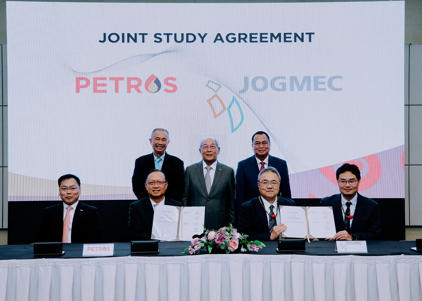 PETROS was represented by Vice President for Subsurface and Development, Jeremy Wong for the agreement with JOGMEC/SUSTEC, and Senior Vice President for Sarawak Resource Management, Dato Abang Arabi Abang Narudin for the agreement with Woodside. Representing JOGMEC was Executive Vice President of Energy Business Unit, Mori Hiroyuki; while SUSTEC was represented by President and Co-Chief Executive Officer, Tsunehiro Hato; SC Tubular Solutions Malaysia Sdn Bhd by President, Yosuke Yamashita; and Woodside by General Manager, Carbon Capture and Storage, Andrew Nicholls.