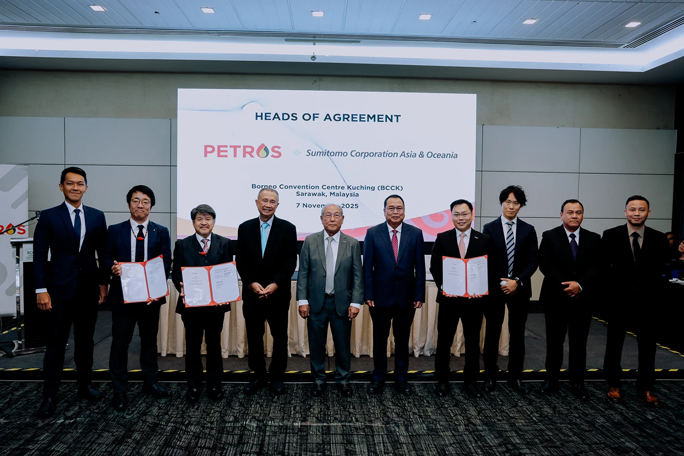 11 November 2025, Kuching - Petroleum Sarawak Berhad (PETROS) today signed two strategic energy agreements and a storage study agreement with international industry players to unlock Sarawak’s onshore exploration potentials through targeted programmes, and to progress Carbon Capture, Utilisation and Storage (CCUS) projects in Central Luconia, Sarawak.