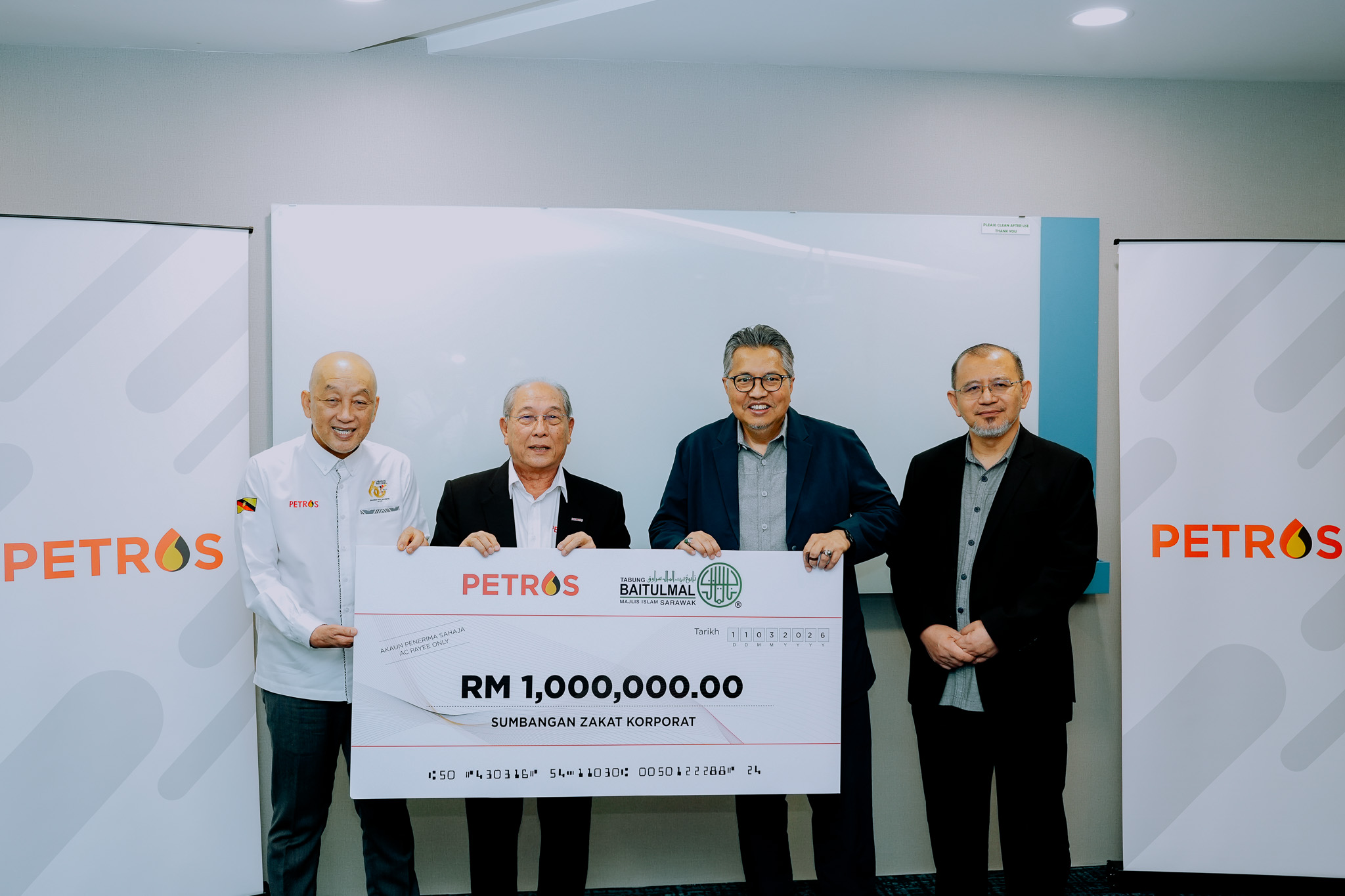 12 Mar 2026, Kuching - Petroleum Sarawak Berhad (PETROS) fulfilled its corporate zakat responsibility with an imbursement of RM1 million to Tabung Baitulmal Sarawak, supporting programmes that benefit communities across the state.